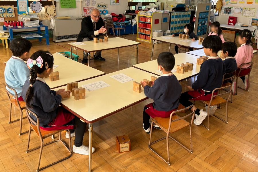 園には第10恩物まであるので、年長組は今後も他の恩物に触れる機会を設ける予定です。恩物をきっかけに構築や造形に目覚め、将来設計士や建築関係の職業に就く子がいるかもしれません。