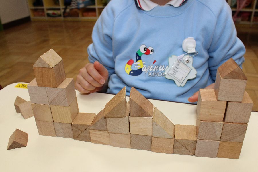 積み木を組み立てては壊し、再び組み立てる事を繰り返しながら適度な緊張感と開放感が子どもの発想を豊かにし、時には息を呑み慎重に、時には大胆に構築しながら創造性や巧緻性を育みます。