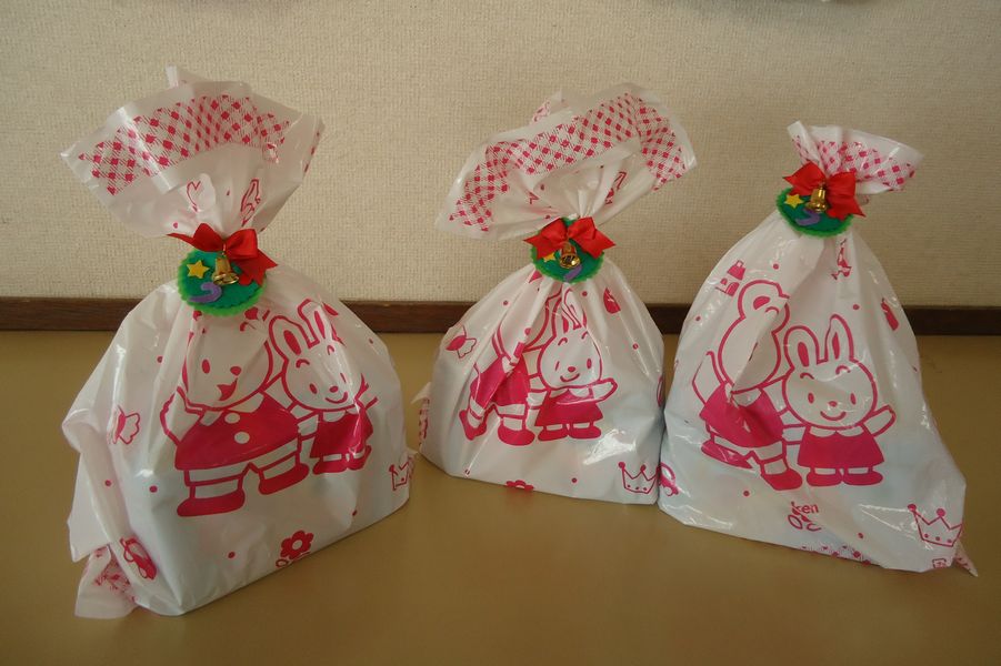 学年毎にお揃いのプレゼントをもらった子ども達は大喜びでした。本当のクリスマスは明日です。「お家にもきてくれるかな?」