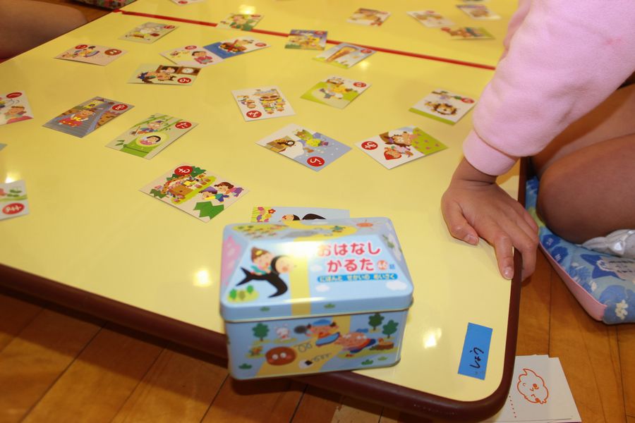 使用したカルタは先月のクリスマス会の時に子ども達全員にサンタクロースから頂いた『おはなしかるた』です。