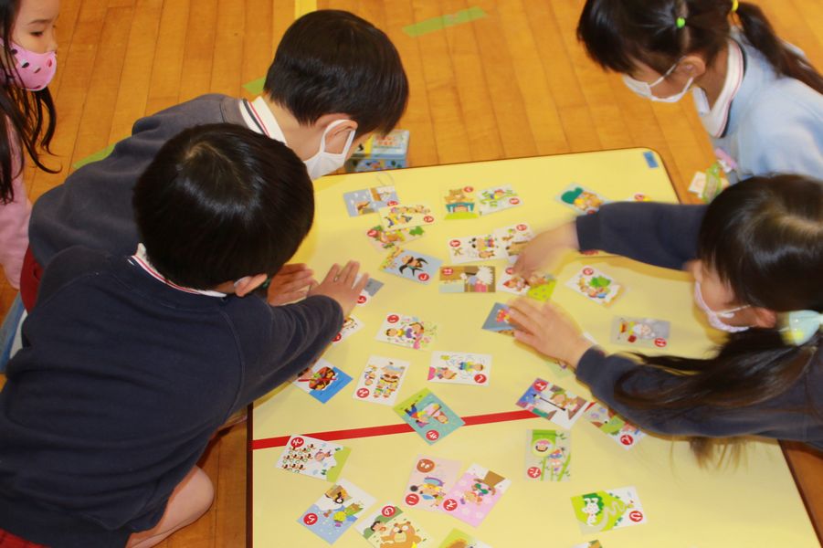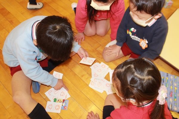 この冬休み中に「おはなしかるた」を家族でやり込んでいた子は沢山の絵札を取って大活躍。最後は気持ちを落ち着ける為に「奏楽」を静かに聴き散開となりました。