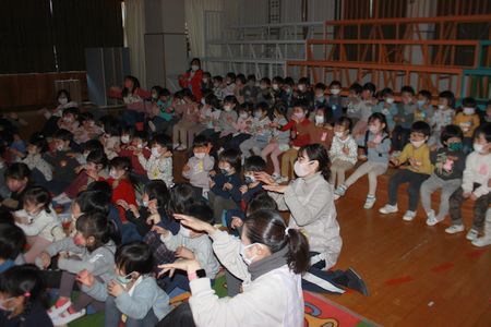 さぎぬま幼稚園では隔年で音楽会と観劇会を交互に行っており、今年度は「劇団かかし座」をお招きして、美しい影絵の世界を子ども達が楽しみました。