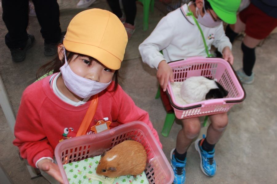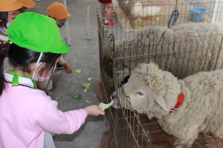 そして、次のスペシャルは「動物との触れ合い体験」です。移動動物園を運営している福田牧場の動物達が園まで来てくれました。