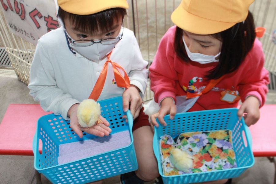 一番の人気はヒヨコのコーナーでした。小さくて毛並みがフワフワで柔らかく、まだ「ピヨピヨ」と可愛い鳴き声をあげるヒヨコに皆癒されている様子でした。