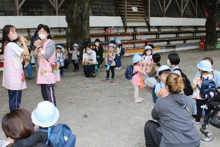 手渡した瞬間は「ウワーッ!」と大きな歓声が上がりました。そして拍手も・・・。そう言えば、一年前は緊急事態宣言が発出され臨時休園中だったので渡せませんでしたね。