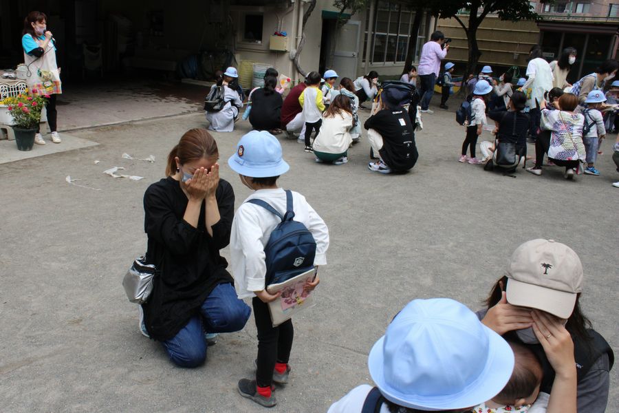 年少組は今日で午前保育も最後です。降園前のほんのひと時でしたが、クラス毎に親子の集いを開きました。お迎えのお母さまが揃うまで暫し手遊びで触れ合い遊びをしました。