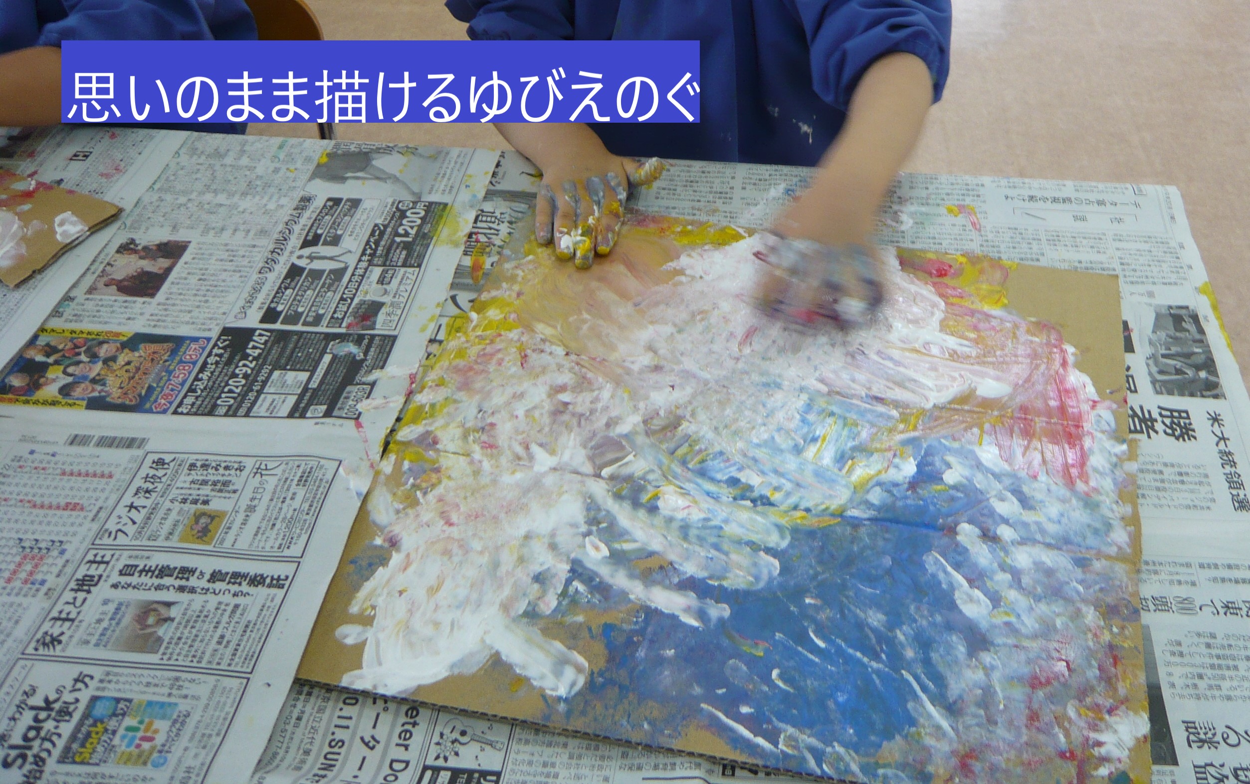 普通の絵の具と違ってペースト状の形態なので直接手で描くことができます。
