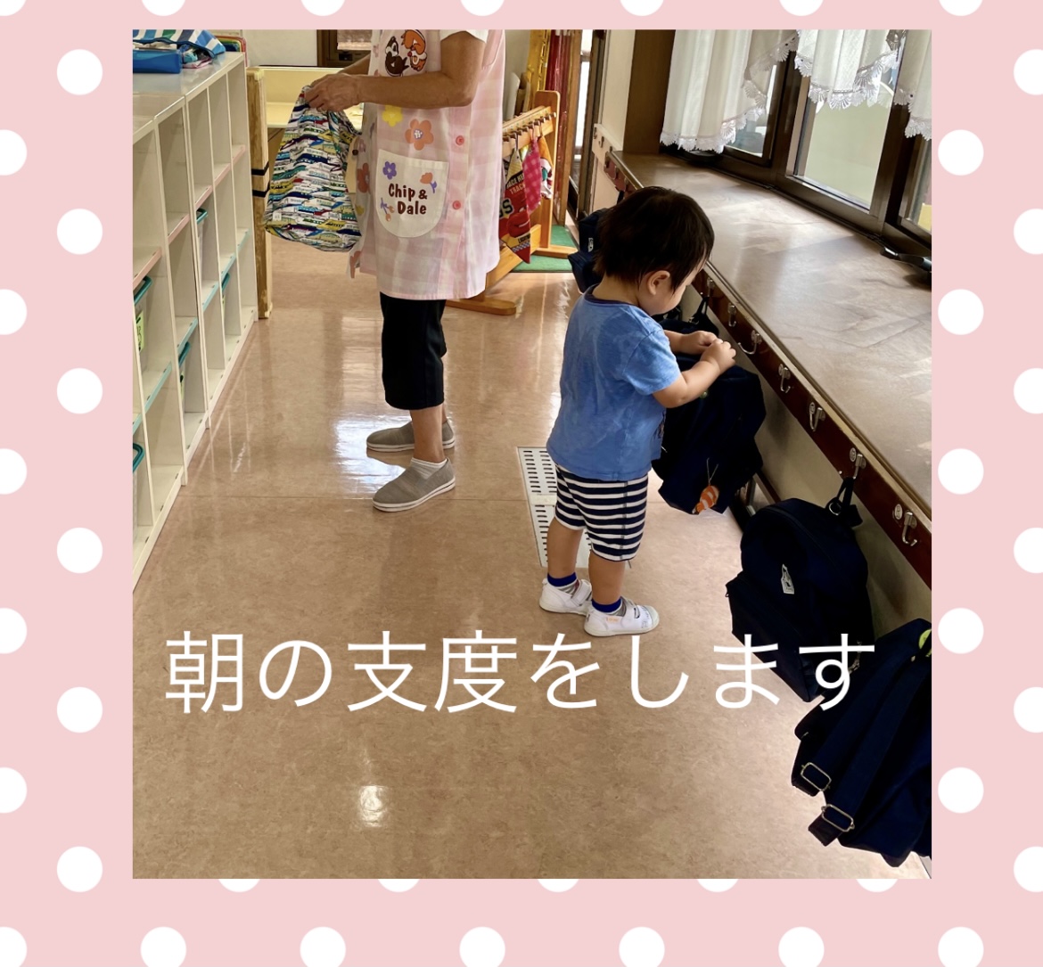 おそろいのリュックを背負って登園してきます。「おはよう!」今日も元気な声です。