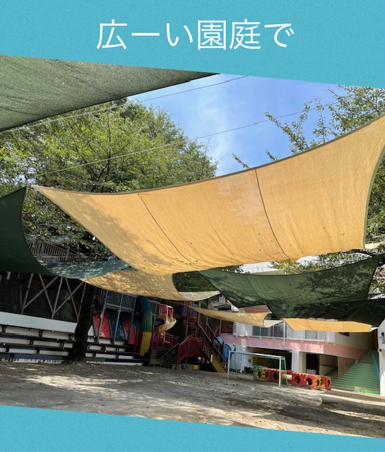お天気の日は広い園庭でたっぷり外遊びを楽しみます。