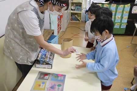 『おたのしみ会』はコロナ前の一昨年『さぎぬま縁日』として実施していたお祭りの縮小版です。各クラス毎に「くじ引き」「ヨーヨー釣り」「宝釣り」など『縁日あそび』を楽しみました。