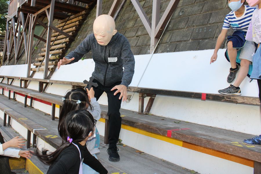第二部の企画は昨年も行った『逃走中』の『ハロウィン・バージョン』です。お父さんゾンビに捕まらないように、提示された写真の場所を子ども達で探します。