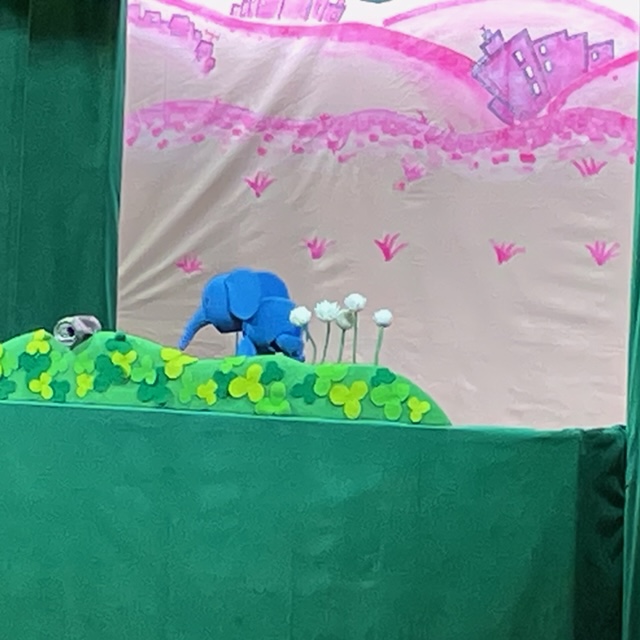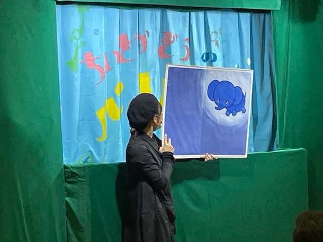 続けての人形劇「ちいさなぞうのパオパオ」はぞうのパオパオが絵本の中から抜け出して冒険をしながらお友達を作っていく素敵なお話でした。