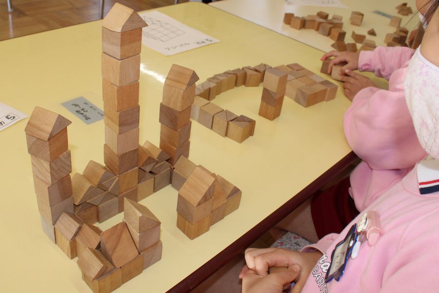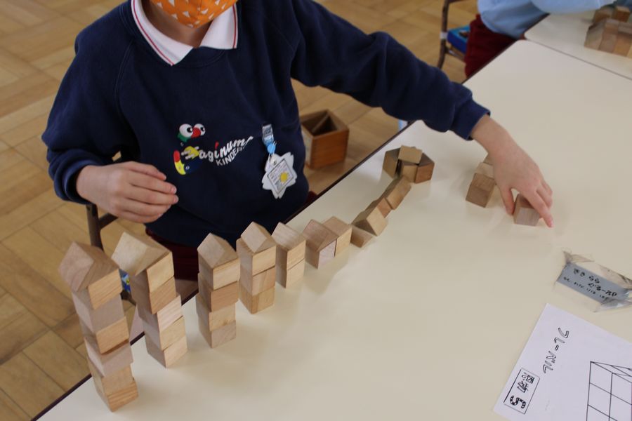その中でも年長児に特に適していると言われている第5恩物を、1月中旬から約2週間をかけて年長組の子ども達と楽しみました。