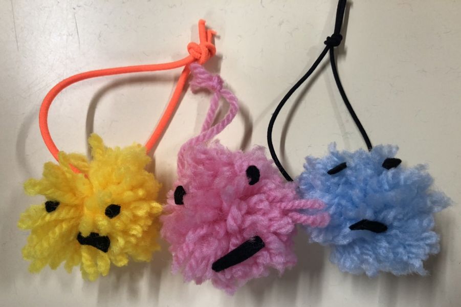 年長組はちょっと難しい「万華鏡」と回すのに練習が必要な「ブンブンごま」、布と牛乳パックで実用的な「ビニールケース」に毛糸を何度も巻いて「ポンポン」を作り「キャラクター人形」や「髪飾り」にしました。