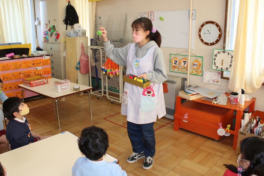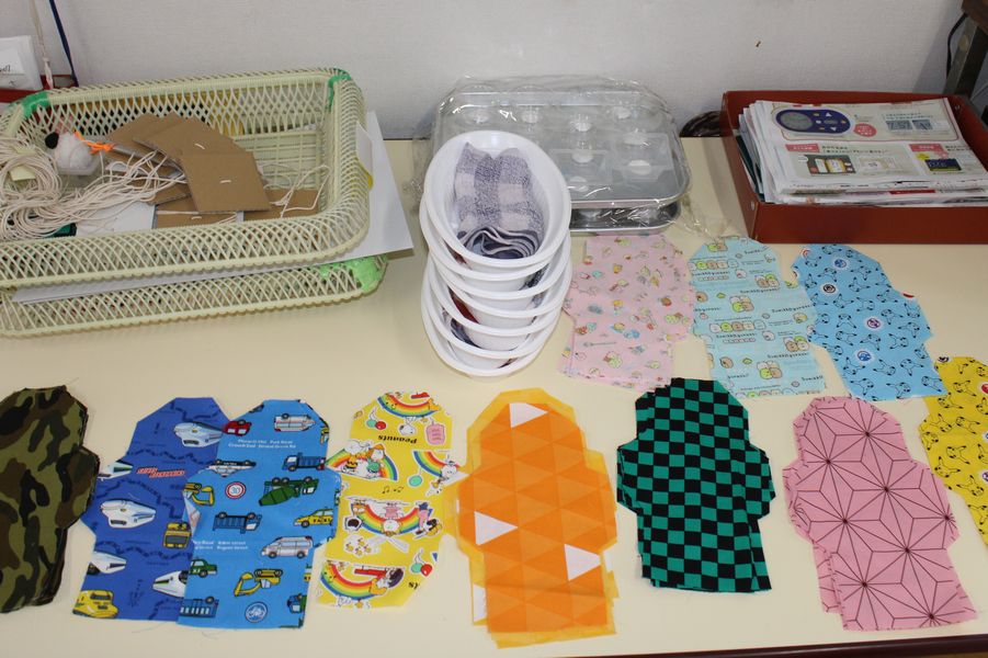 各学年毎に「布」「紙」「毛糸」を素材とした製作と年長組が運動あそびでお世話になっている有木先生が考案した「ありんこおもちゃ」の4つのカテゴリーの中から数種類の制作を行いました。