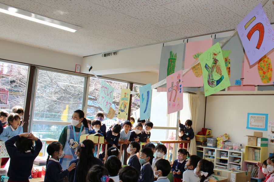 コロナ禍で例年の様に全学年が体育室に集っての「お別れ会」はできませんでしたが、年長組にとっては思い出深い趣のある会になりました。
