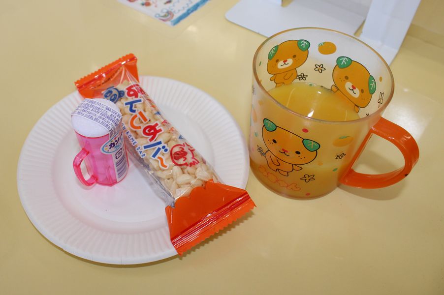 そして最後にクラスでおやつパーティーを開きました。ミニビールジョッキの中にはラムネが入っています。皆で「お別れ会かんぱーい!」と言って美味しくいただきました。