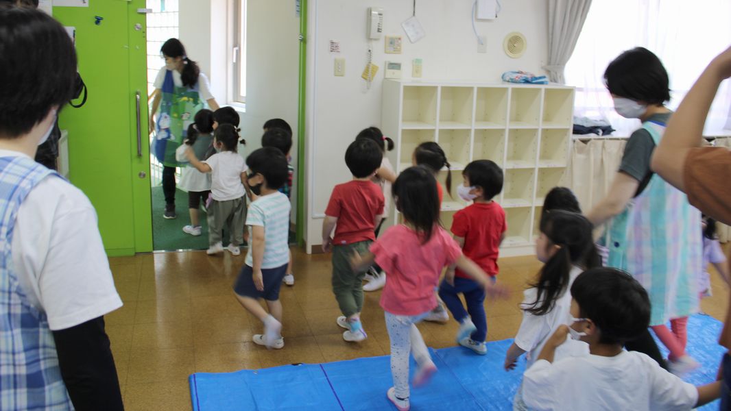 全大会が終わると子どもたちも『さんぽ』の曲に合わせ、1クラスずつ行進して会場を後にしました。お部屋に戻ってからもおやつを食べたりして楽しく過ごしました。