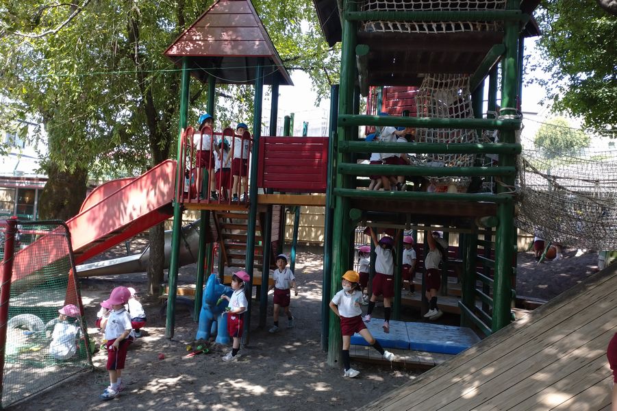 これから暑い季節になりますが、天気のいい日は体を使う遊びをして体力も付けなければいけません。従来通り、朝当園して直ぐとお弁当の後の自由遊びは体力づくりには欠かせない時間でもあります。