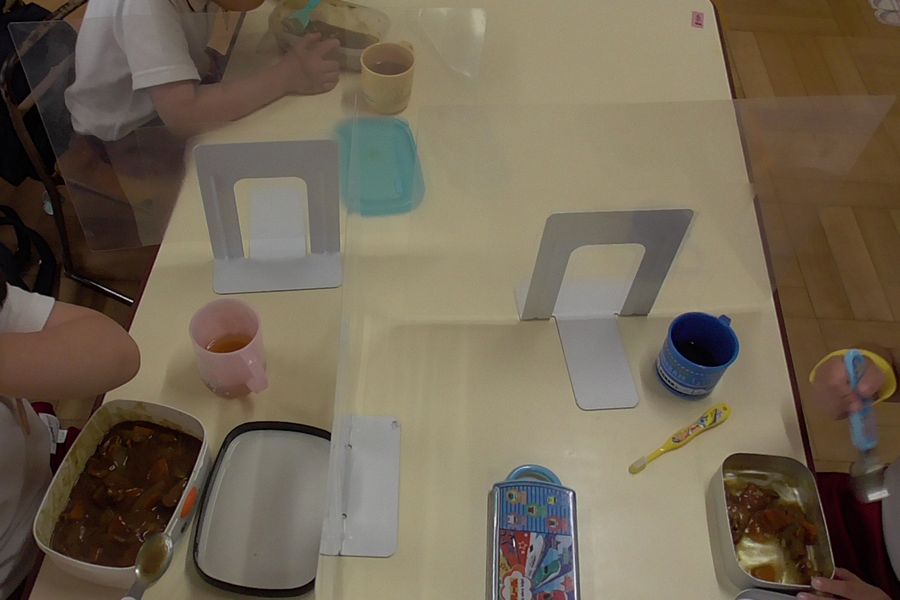今日はいつもの弁当箱より少し大きめのタッパーにご飯のみご家庭で用意してもらい、できたて熱々のカレーライスに舌鼓を打ちました。そしてデザートにミニゼリーもいただきました。
