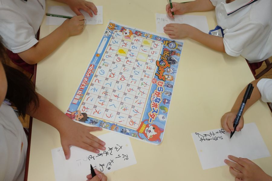 年長組も女の子は憧れの「プリキュアになりたい」という願いが多かったみたいです。平仮名の一覧表を確認しながら一文字一文字丁寧に書いていました。