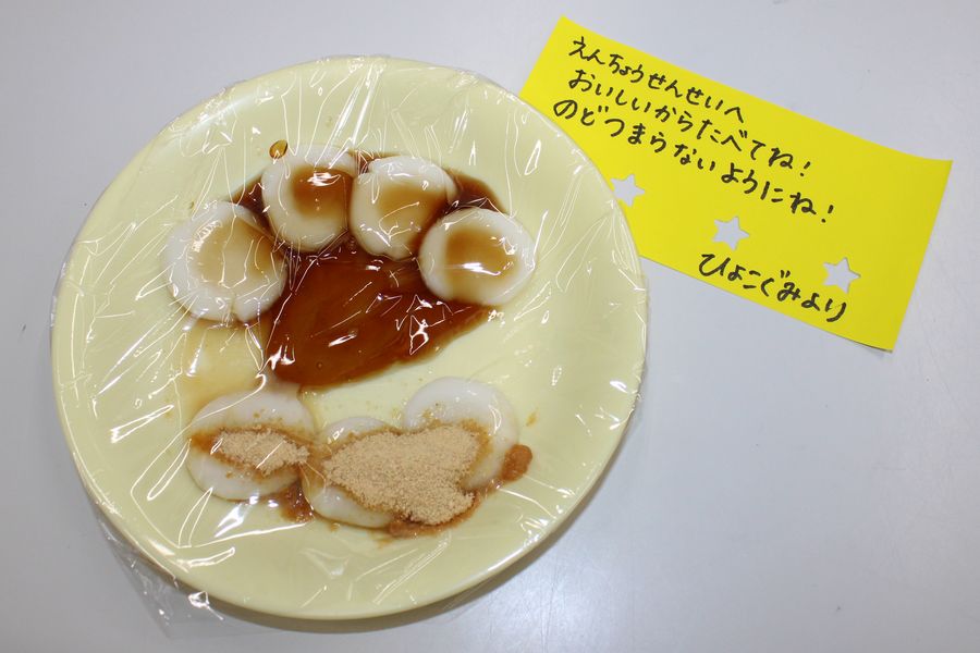 おすそ分けが園長の机にも届き「喉につまらない様にね!」のメッセージに思わず笑ってしまいました。ことづけの通り気を付けて美味しくいただきました。
