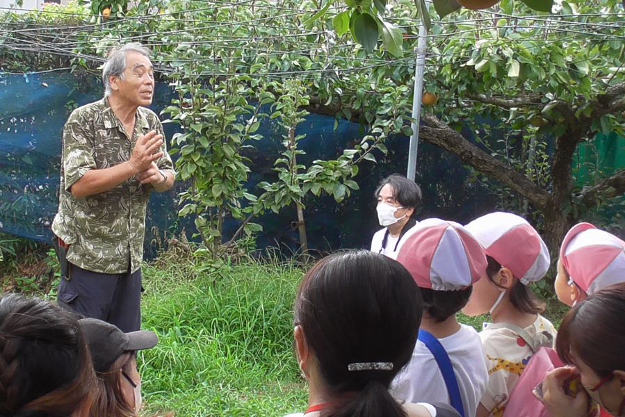 正果園は近隣の小学校の生徒に梨の観察学習や梨もぎ体験を提供されたり、梨園の中で音楽会を開いたりと地元に根付いた農家です。
