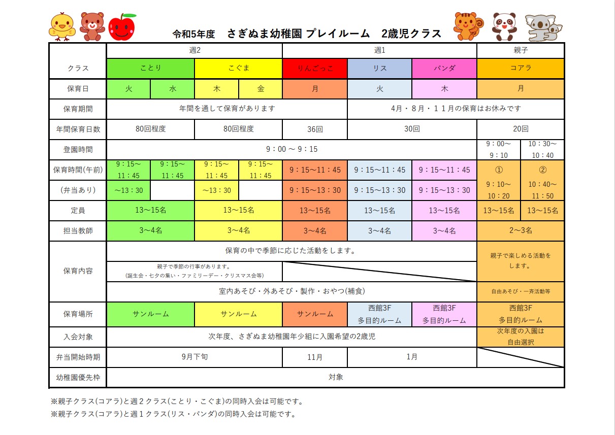 さぎぬま幼稚園プレイルームには親子教室 コアラ
