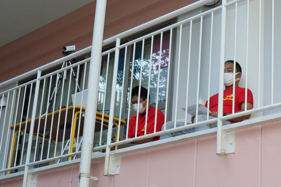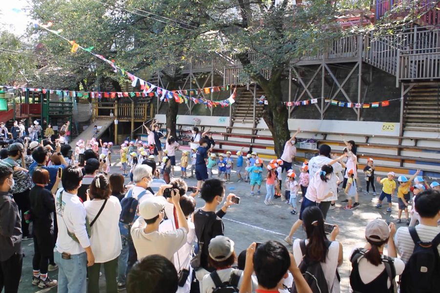 今回も当園の『おやじ倶楽部』の皆さんが観客席の組み立てやライブ配信の動画撮影など沢山協力していただきました。来週予定の年中組、年長組の運動会でもライブ配信をお願いしています。