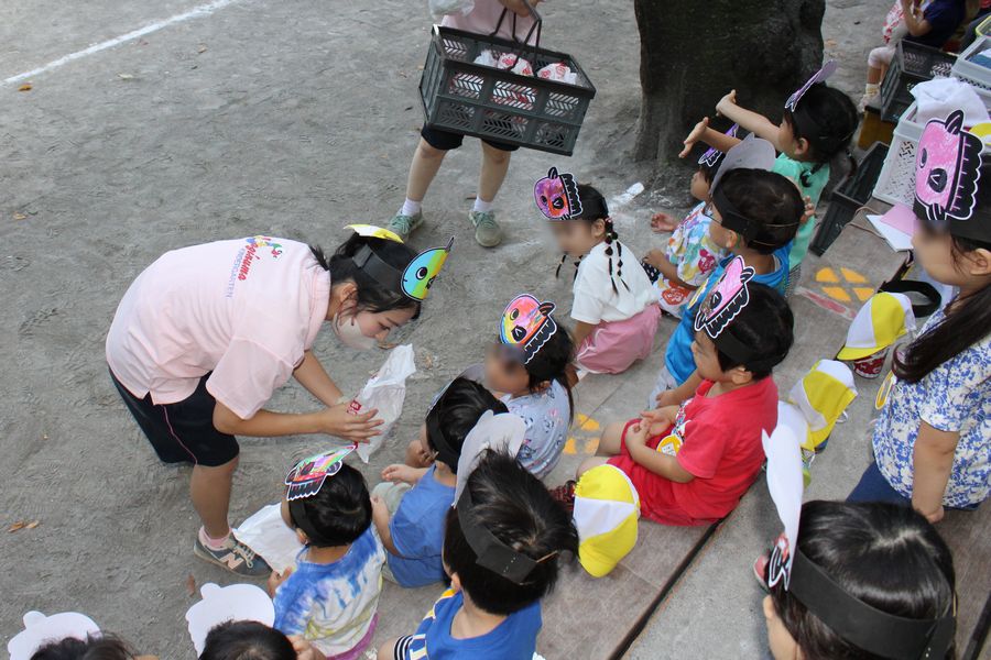 全ての種目を終えるとおわりの会(閉会式)で、担任から一人ひとりに「頑張ったね」の言葉添えながらご褒美が手渡されました。