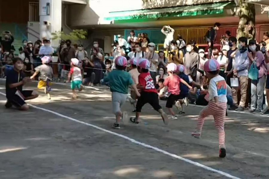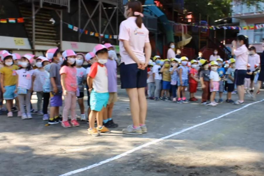 秋晴れの下、年少組の『うんどうかい』が開催されました。当園はコロナに関係なく、毎年、年少組だけで運動会を開催しています。今年はお父様、お母様のお二方をお招きして行いました。