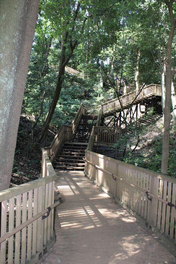 また以前拠点としていた古代芝生広場に通じる長い木製の階段も何度も上り下りしていました。芝生広場には「この木なんの木」を彷彿させる大きな樹木がいくつもそびえていました。
