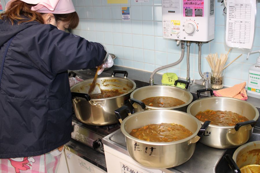 「いつもは人参は苦手だけど今日は皆と一緒だったからたべられたよー」と子どもたち。ご飯が無くなってもルーだけお代わりをしてあっという間に鍋は空っぽになりました。