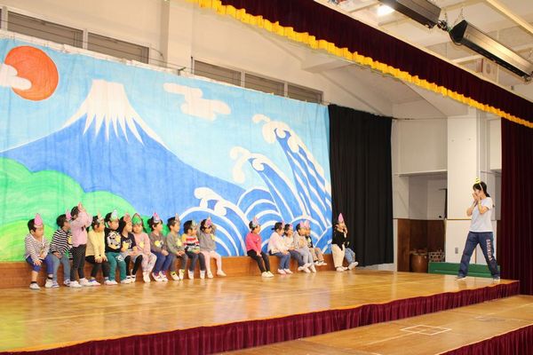 先月行われた年中組と年長組の発表会は、クラスを解体して各児が種目を選択して参加するオープンシステム形式で行いましたが、年少組はクラス単位での『はっぴょうかい』を開催しました。