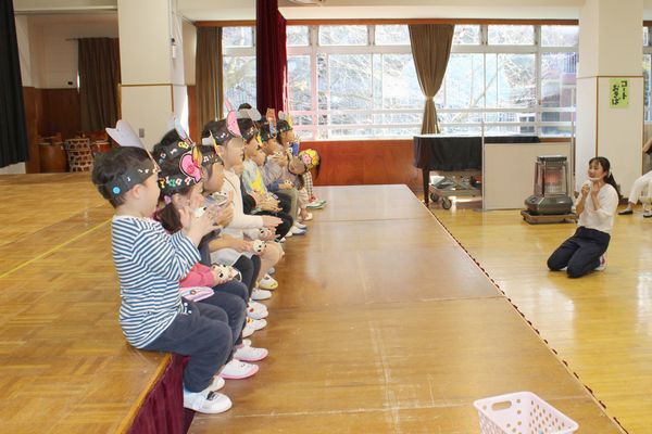 入園してから9か月間過ごしてきた中で、各クラスで特に楽しんできた絵本などを題材にして、その世界に入り込みイメージを共有して楽しんでいる様子を観ていただきました。