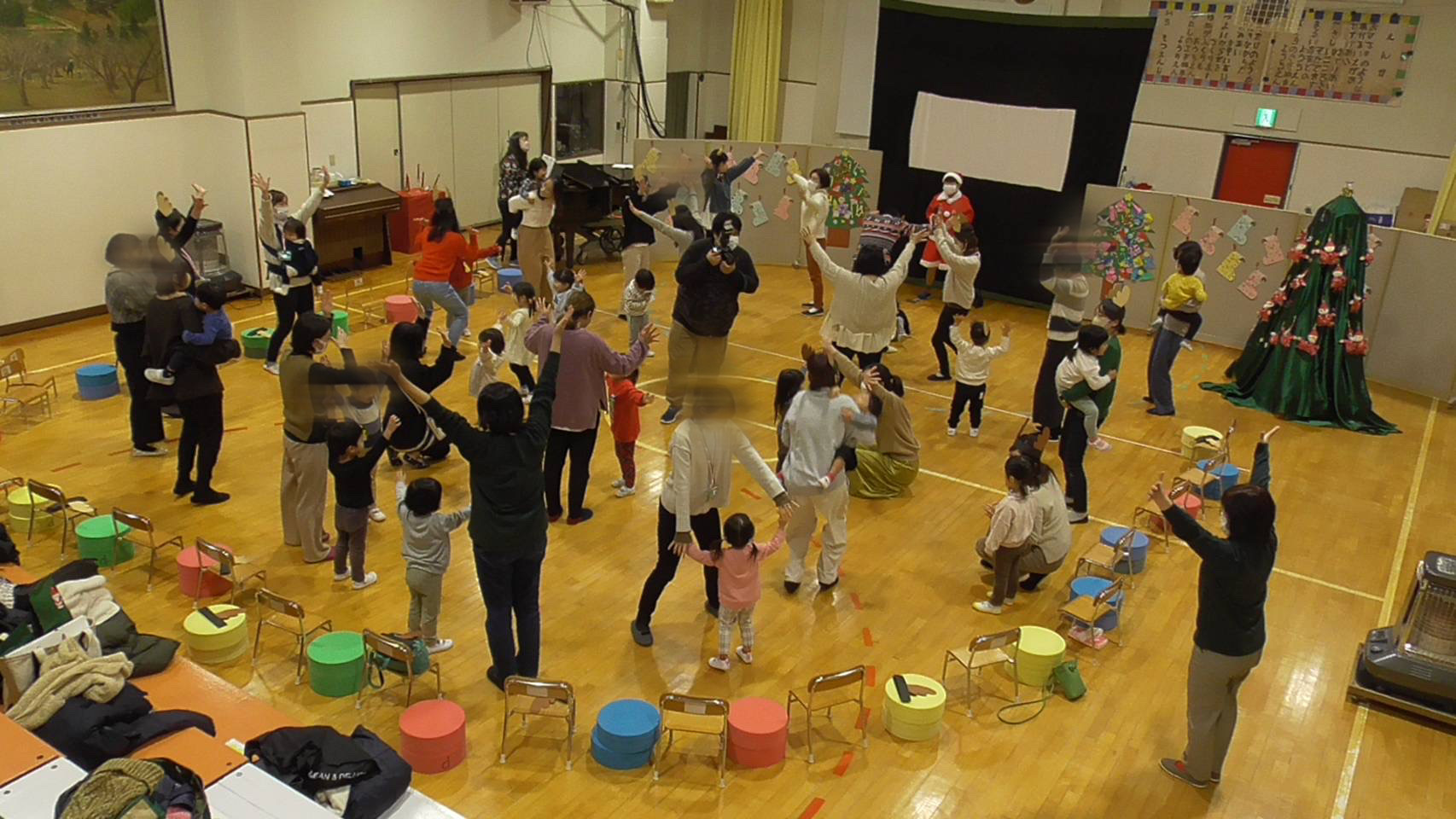 こどもたちがダンス「サンタクロースはどこだ」を踊ってサンタを探していると
