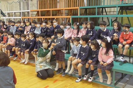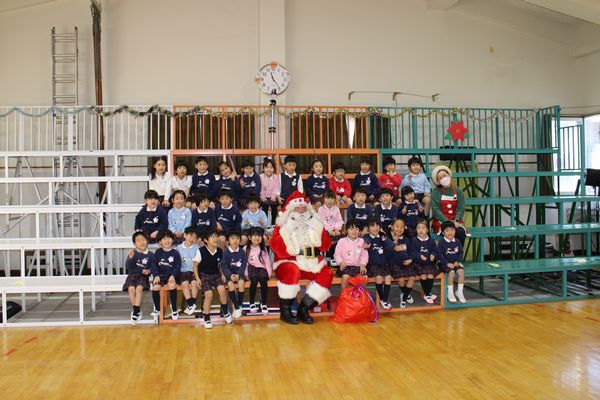 2学期締めくくりの行事『クリスマス会』を開きました。クラスを半分に分けて2部制でしたが、3年ぶりに体育室に集いました。