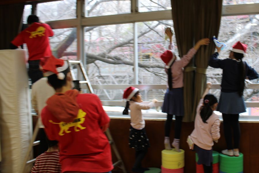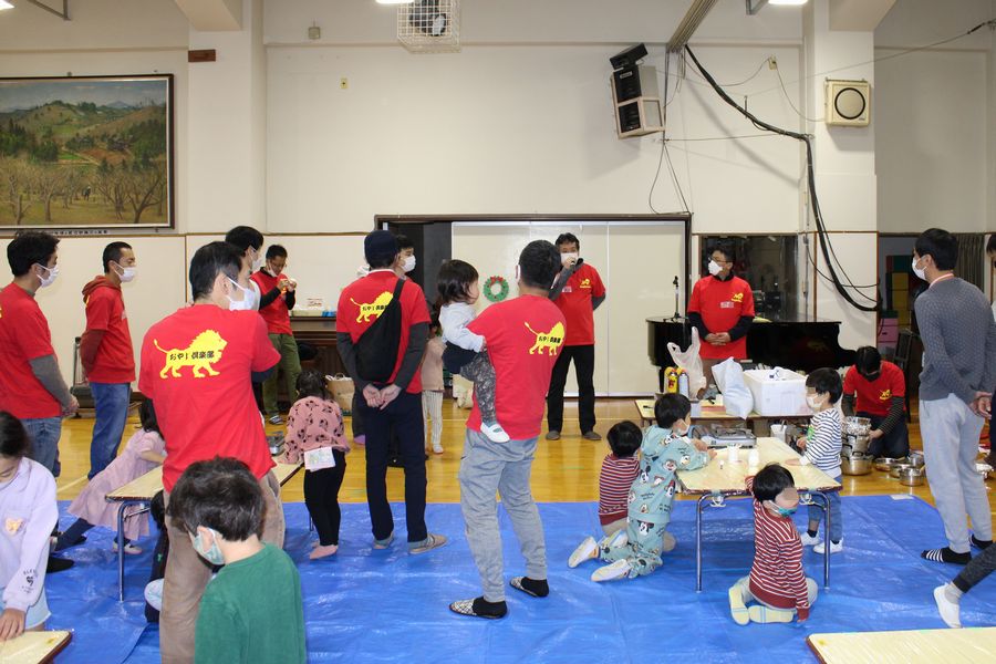今年はコロナ禍の状況を見ながら5月のイベントを含め今回で3回目、20組以上の親子が体育室に参集し『クリスマスキャンドル製作』を楽しみました。