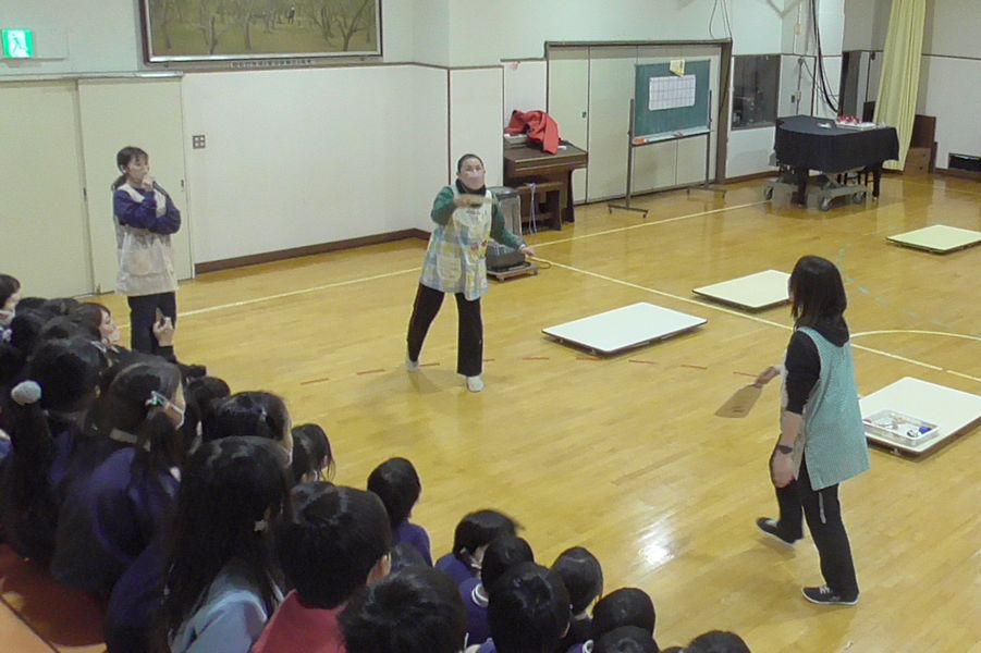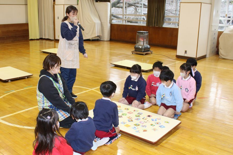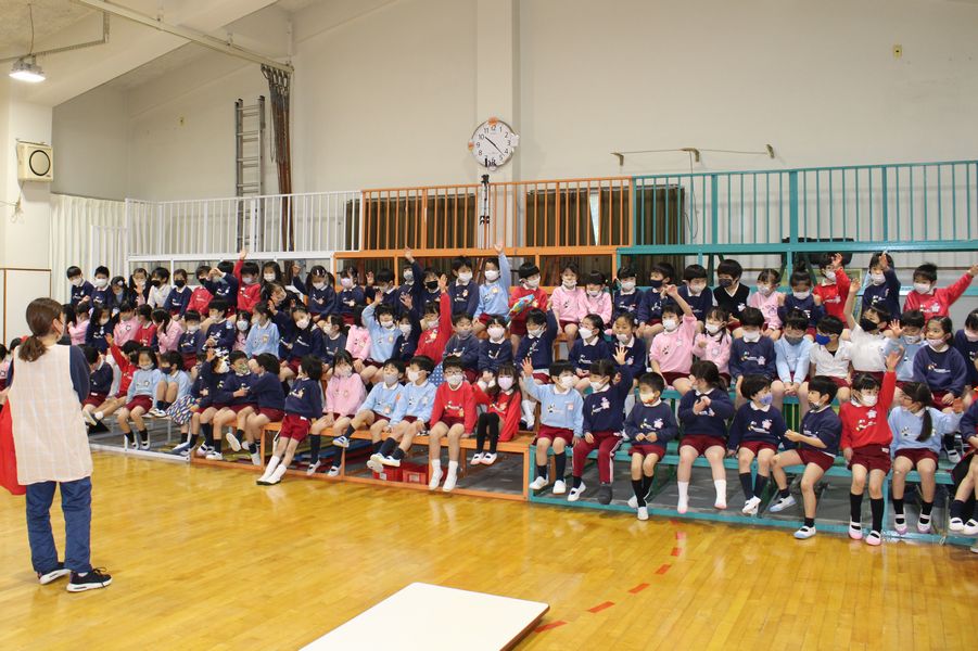年長組が3学期最初の学年集会を行いました。今回は3年ぶりに全クラスが一同に集い、3クラスの対抗戦での開催となりました。