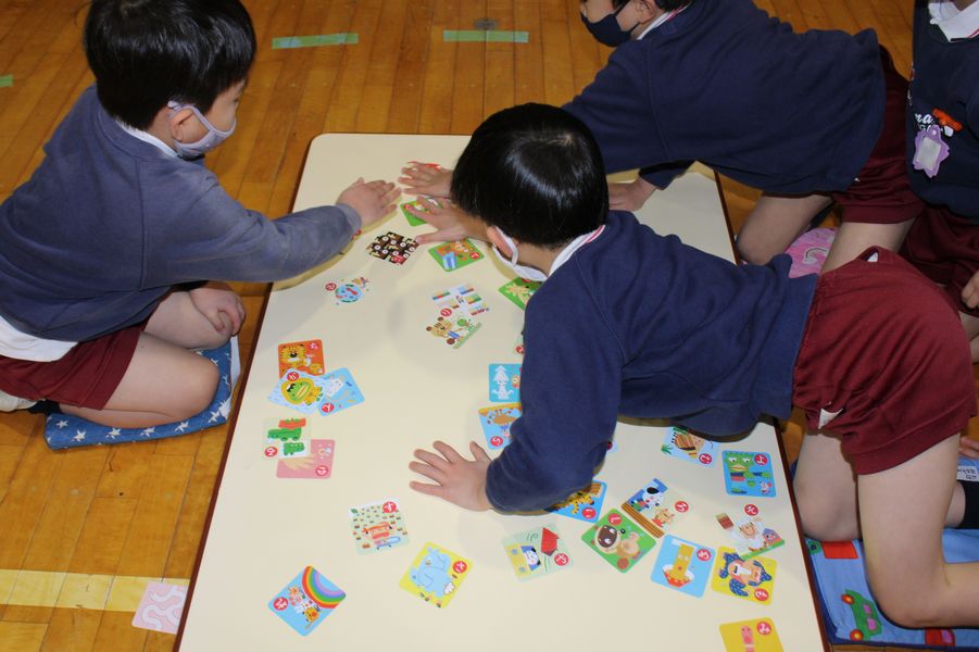 今回の勝負は「ふじ組」がチャンピオンでした。冬休み中にご家庭で沢山楽しんでいた子は大活躍だったようです。