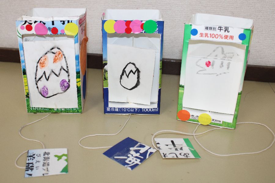 年中組も同じく牛乳パックを使って「びっくりカメラ」を作りました。一瞬で絵が変わる仕掛けには大喜びでした。