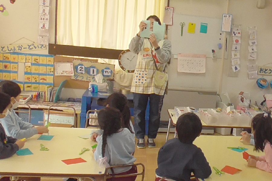年長組は2月1日から3日間、毎日造形活動を行いました。製作を楽しんだのは、毎週木曜日に運動遊びでお世話になっているありんこ先生が考案した「万華鏡」です。