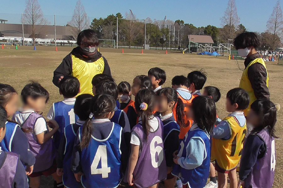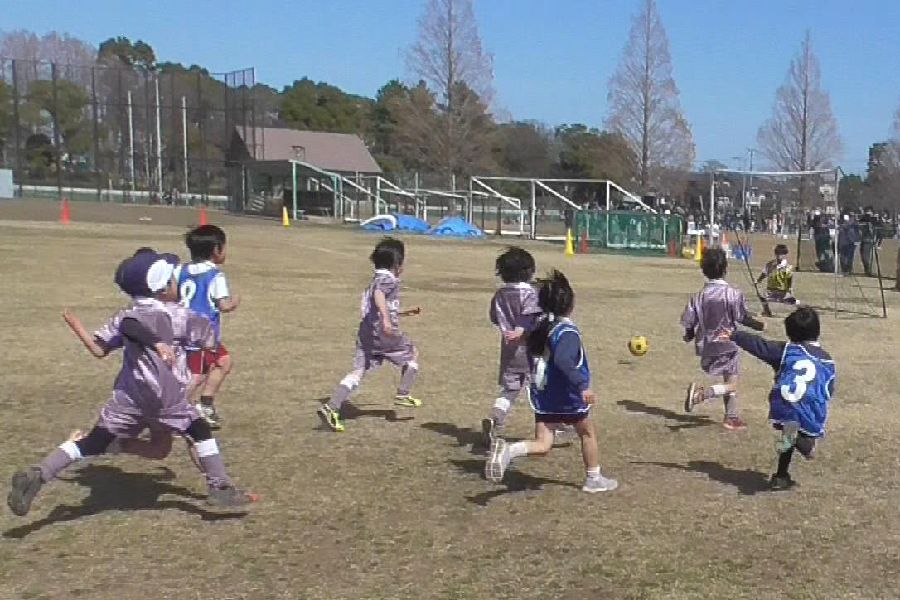 子ども達はコーチの指導のもと「ブルー」「オレンジ」「パープル」3色のチームに分かれてローテーションして6試合に出場しました。