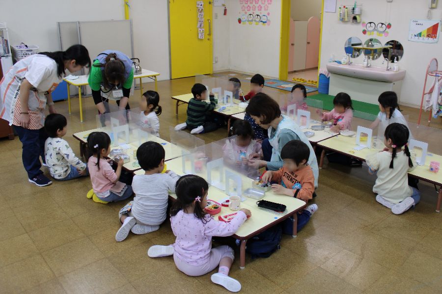 連休明けにはコロナの対応が変わりますので、卓上シールドの設置も今日明日のみです。子どもたちは「今日は好きなものばかり入っている❤」と大喜びでした。
