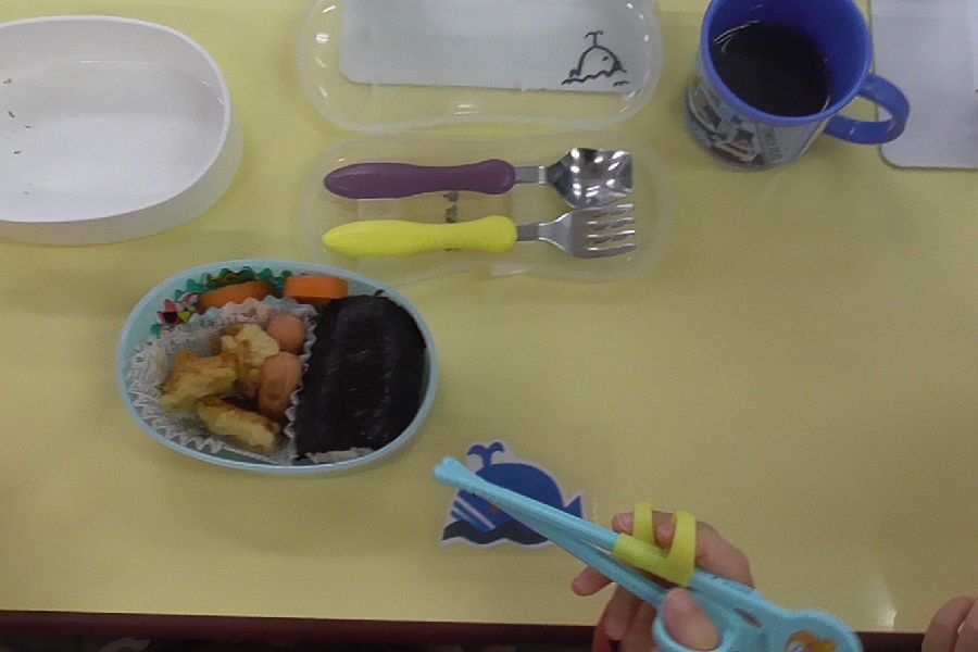 初日はお母様手作りのお弁当が多かった様子。日頃から食べ慣れているから安心して食べていました。