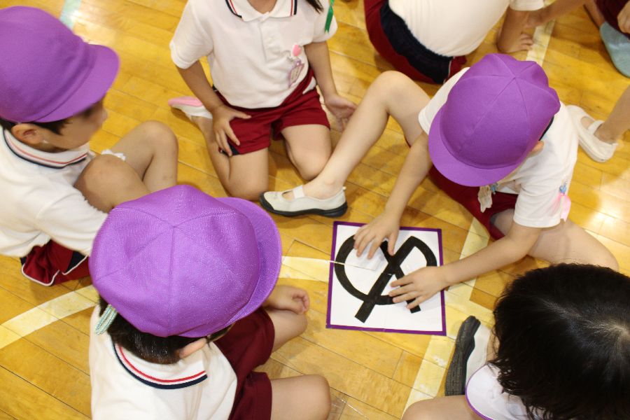 かくれんぼ対決ではほとんどの先生が見つかりました。そして次の課題は『謎解き』です。いつも運動遊びでお世話になっているありんこ先生からの『挑戦状』が届き皆でチャレンジしました。