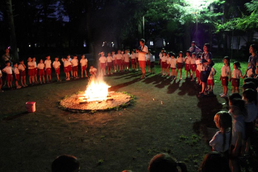 夕食後は外に出て『キャンプファイヤー』も楽しみました。火力の強さや明るさに感動し、火の大切さ便利さと同時に怖さも学ぶ良い機会になりました。