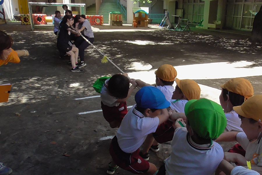 先生たちとの対決はクイズの他、尻尾取り、綱引き、そしてかくれんぼ対決と盛り沢山。先生たちも容赦なく全力で戦いました。