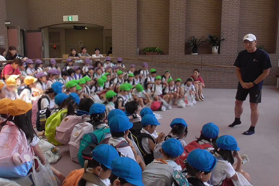 いつもより少し遅めの11時頃に幼稚園に集まった年長組の子どもたち。結団式ではワクワクが抑えきれず元気一杯の挨拶に先生たちもびっくりする程でした。