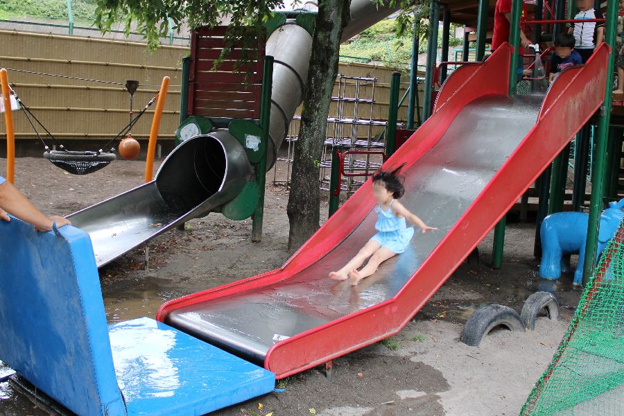 今回は真夏の園庭開放イベントとして『大水遊び大会』を開催しました。ビニールプールや水鉄砲で水遊びしたり、ウォーター滑り台も楽しみました。